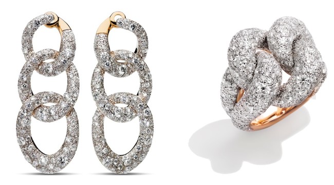 「カテネ」:K18RG×ダイヤモンド イヤリング4,961,000円、リング5,632,000円(税込)