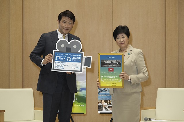 表敬訪問では、多彩な「東京」の魅力を発信するためにSSFF & ASIAと東京都が連携し、「東京」をテーマにしたショートフィルムを世界から公募する「Cinematic Tokyo部門」の優秀作品を小池都知事から発表。本年は全世界から257本の応募があり、優秀賞(東京都知事賞)に選ばれたのは、スイスのミシェル・ヴィルド監督とミシェル・ヴィルド & ローベルト・シュナイダー監督が手掛けた『Tokyo Rain』。