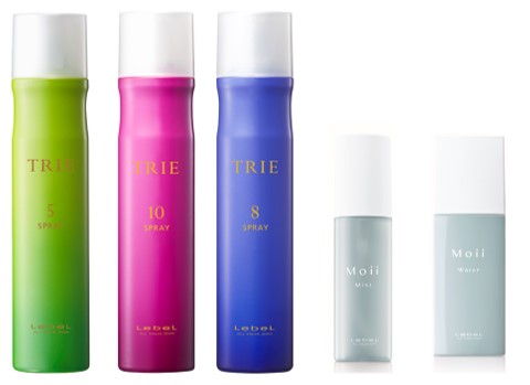 (左から)TRIEスプレー5、TRIEスプレー8、TRIEスプレー10、Moii ミスト エラスティックモード、Moii ウォーター ジェントルドーン