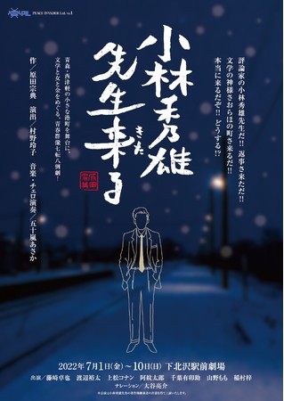 PEACE INVADER Ltd.・合同会社ハルベリーオフィス 企画製作、PEACE INVADER Ltd. Vol.1『小林秀雄先生来る』が2022年7月1日(金)〜10日(日)に下北沢駅前劇場(東京都世田谷区)にて上演されます。チケットはカンフェティ(運営:ロングランプランニング株式会社、東京都新宿区、代表取締役:榑松 大剛)にて4月29日(金)10:00より発売中です。