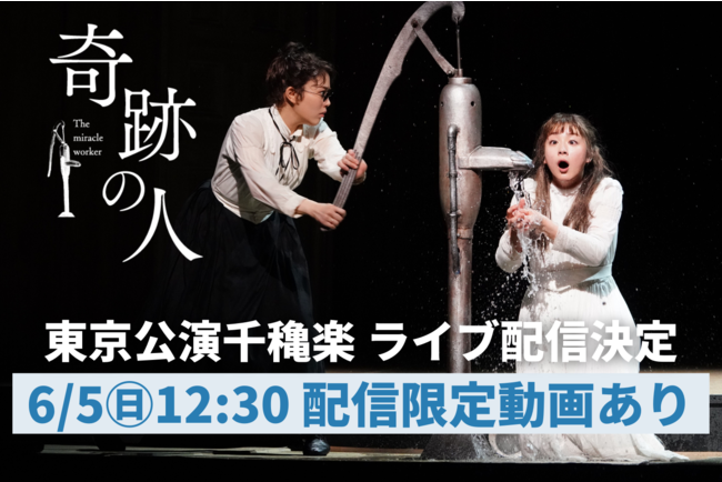 現在上演中の舞台『奇跡の人』の東京公演の千秋楽である6月5日(日)12:30よりイープラスStreaming+にてライブ配信されることが決定した。演出は森 新太郎、出演は高畑充希、平 祐奈ら。