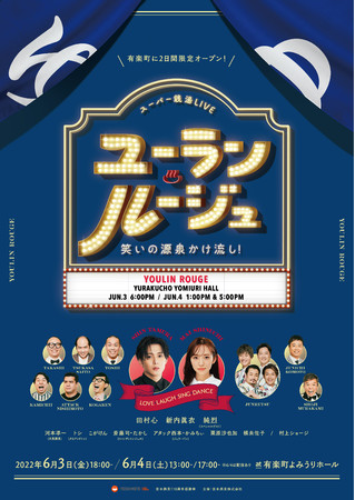 本公演は、有楽町のど真ん中に突如現れたスーパー銭湯「ユーラン・ルージュ」を舞台に、よしもと人気芸人×2.5次元舞台主演俳優×ラジオメインパーソナリティアイドル×紅白常連歌手による異色の組み合わせが巻き起こすノンストップコメディLIVE!スーパー銭湯のオーナー役である村上ショージとヒロインであり銭湯のオーナーの娘役である新内眞衣が物語上でのコンビネーションを魅せる。芸歴45年の大ベテラン村上ショージと元アイドルの新内眞衣の親子漫才をお楽しみください。