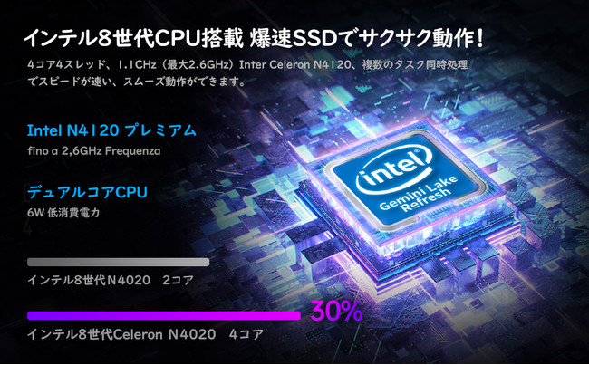 ●第8世代インテルGemini Lake Refresh N4120 4コア プロセッサー・ファミリ情報