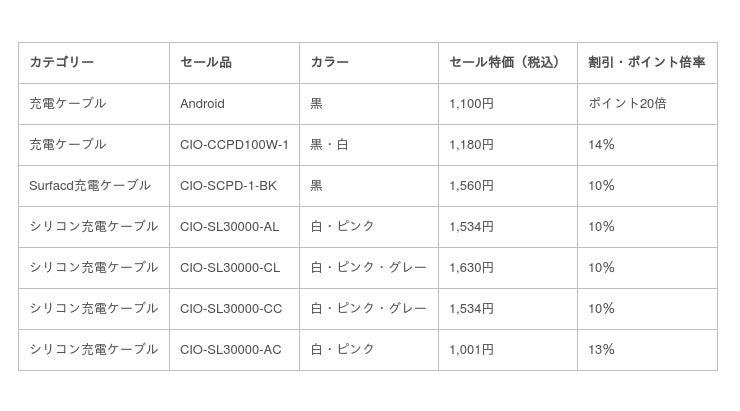 モバイルバッテリー「SMARTCOBY」、GaN対応急速充電器「Nova Port DUO」などを展開する株式会社CIOは「RakutenスーパーSALE」に向け同社人気製品など最大75%OFFにて販売いたします。実用性に優れたGaN対応急速充電器や、人気の超小型・高出力モバイルバッテリー、柔軟性に優れた絡みづらいシリコン充電ケーブル、これからの季節に活躍するネックファンなど多数ラインナップいたします。