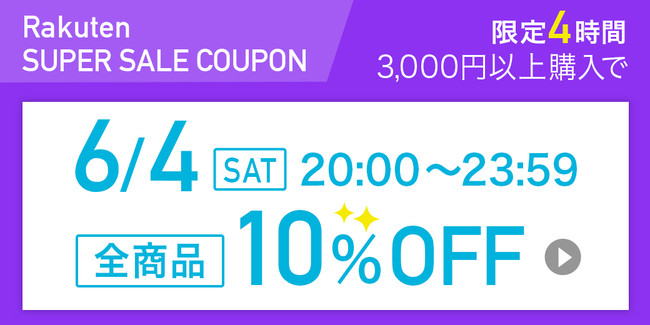 『楽天スーパーSALE 』の開始4時間は3,000円以上のご購入で全商品10%OFFのスペシャルクーポンを配布!