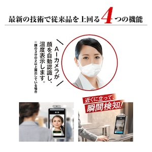 体表温は計測時や計測前の環境条件、被測定者の状態等により変動いたします。本製品は、顔の表面温度を検知して、体温が高い可能性のある人物を発見するための装置であり、体温を測定して対象が疾病にり患しているかどうかを診断する機器ではありません。体温が高い可能性のある人物を検知した場合は、必要に応じて、体温計での体温測定や医師による診断を行ってください。