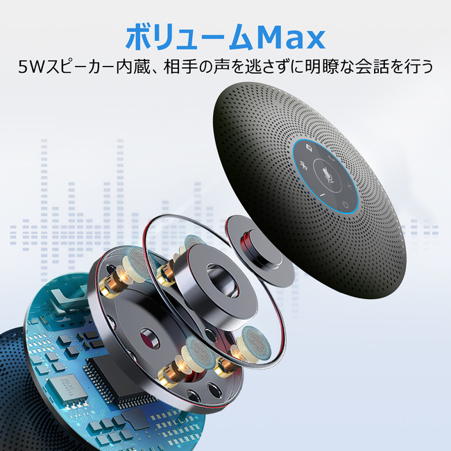 人気モデル「EMEET Officecore M2」の性能を保留したEMEET M2 Maxスピーカーフォンは、スピーカーの出力性能を5Wにアップグレードしました。スピーカーの出力を5Wに強化するにより、声が小さすぎる問題がなく、相手の話し内容を低い音から高音まで全ての音域でクリアに聞こえます。