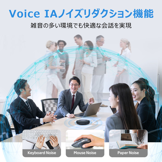 EMEET独自の音声信号処理技術を生かしたVoice IAモードで、周囲の雑談の音、コピー機・エアコンのノイズ、キーボード打ちの音などを抑制でき、発言者の音を明瞭に展開できます。エコーキャンセリング機能およびノイズキャンセリング機能の搭載により、快適な双方向会話を可能にする会議用マイクスピーカーです。