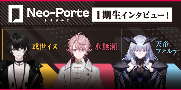 VTuberの渋谷ハル、プロゲーミングチーム「Crazy Raccoon」、歌手のまふまふ、そらるがプロデュースするVTuber事務所「Neo-Porte」(ネオポルテ)。そこから今年3月にデビューした1期生のうち、或世イヌ、水無瀬、天帝フォルテの3人に直撃インタビュー! 実はお茶目? 寂しがり屋? 無の時間が好き? ネオポルテ1期生はどんな人たちなのか、たくさんお聞きしました!