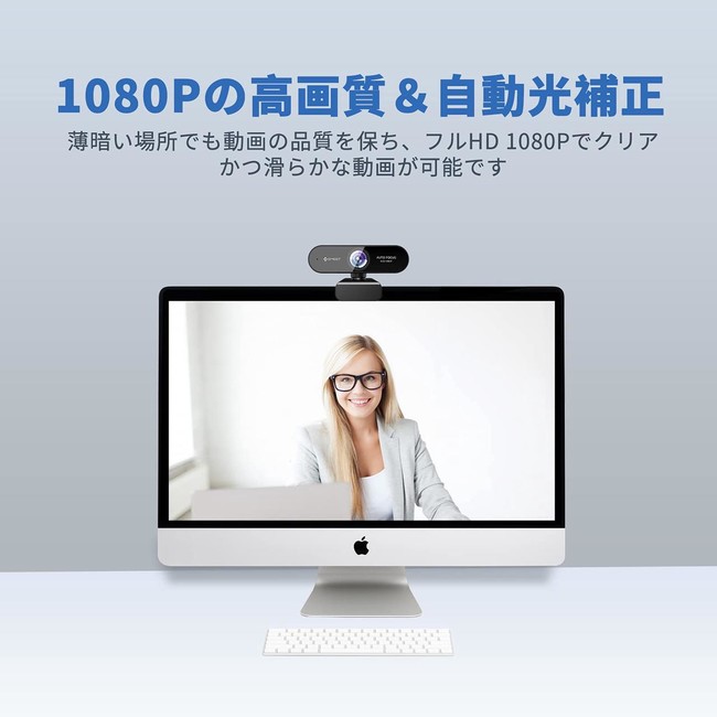 1080P/30fpの高精細画質で表示し、200万画素で鮮明かつ滑らかな撮影が可能です。レンズは4層高性能光学を使用しており、薄暗めの室内からでもクリアな映像が送信できる自動低照度調整機能付き、色調や露出の補正にも優れているウェブカメラです。