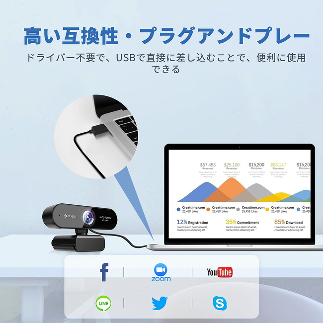 Windows XP/VistaおよびWindows7/8 / 8.1 / 10、Mac OS10.4以降などのさまざまなOSに対応可能です。Skype、Line、zoom、Face Timeなどさまざまなアプリやソフトとの互換性も良好です。