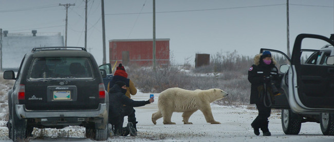 カナダのマニトバ州チャーチルはホッキョクグマが撮影できる場所として知られている。この場所で撮影される熊の姿は野生の象徴として様々な媒体で紹介されるが、果たして熊たちは人間のことをどう見ているのだろうか。本作は熊の移動経路に障害物として存在する我々人間の姿を映し出す。