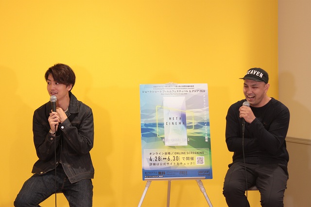 トーク後半では、ショートフィルムの魅力についてのトピックスも繰り広げられました。「少数精鋭でスタッフ、共演者とのコミュニケーションが密にとれる点、短い時間に起承転結がつまっていてその世界観にすぐ入り込みやすい。一つの題材を追えるのが魅力。」と監督が話すと、伊藤さんからも、「(ショートフィルムは)できることの幅がすごくあるジャンル。長編ではルールがたくさんあるが、短編はオリジナルで自分もゼロから参加できる自由さがとても楽しかった」と語りました。