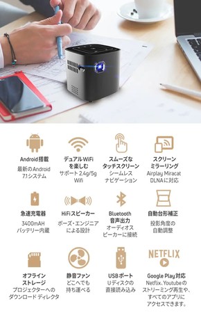 AirPlay、Miracastに対応し、スマホの画面を直接投影できます! iPhoneとAndroid対応。