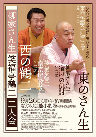 柳家さん生 笑福亭鶴二 二人会『東のさん生 西の鶴二』