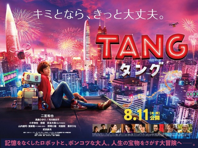 ゲーム三昧で妻に家を追い出されたダメ男、健。わけあって無職で人生に迷子中。ある日、家の庭に突然現れたのは、記憶をなくした迷子のロボット、タング。初めは時代遅れの旧式のタングを捨てようとする健だったが、タングが失った記憶には、世界を変えるある秘密が隠されていたーー。謎の追っ手が迫る中、大人とロボット、ふたりの迷子が大冒険の先に見つけた《人生の宝物》とはーー?