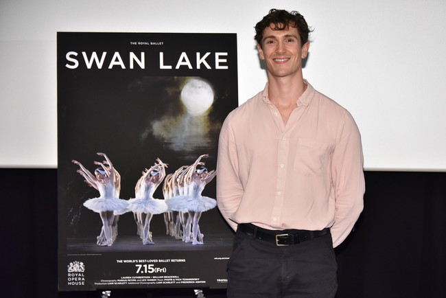 7月15日(金)から全国公開となる英国ロイヤル・オペラ・ハウス シネマシーズン「白鳥の湖」の先行上映前に、ゲストを呼んでのトークショーを実施。当初登壇を予定していたケヴィン・オヘア芸術監督の日本到着が遅れ、急遽、本作「白鳥の湖」でジークフリート王子を演じるプリンシパルダンサーのウィリアム・ブレイスウェル氏が登壇することになった。ブレイスウェル氏は、7月13日(水)から渋谷のBunkamuraオーチャード・ホールで始まるロイヤル・バレエ・ガラ公演の為に来日、日本に到着してから間もないにもかかわらず、疲れをみせず、日本のファンに向けて温かいメッセージを寄せた。