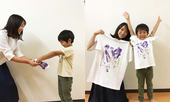 子どもたちの描いた絵は、プラザクリエイトの和光プリントセンターでTシャツに印刷。後日、保育園を通じて家族の元へ届けられました。