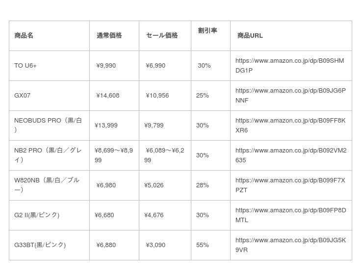 ワイヤレスイヤホン/ヘッドホンシリーズセール対象製品一覧