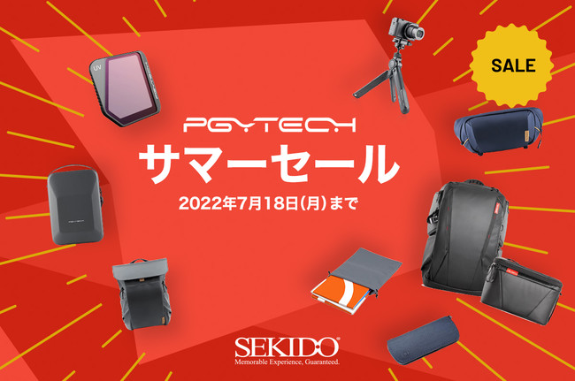 PGYTECH(ピージーワイテック)の日本総代理店を務める株式会社セキド(本社:東京都港区、代表取締役:大下貴之)では、7月12日(火)〜 7月18日(月・祝)の7日間限定で対象の PGYTECH製品が10%OFFとなる「PGYTECH サマーセール」を、セキドオンラインストアのほか各ECモールにて開催いたします。定番人気のDJIドローン用アクセサリーのほか、カメラ/ガジェットユーザーの人気が高まる各種カメラバッグ、利便性と互換性を両立した多機能ミニ三脚やカメラマウントシステムなどがお得な期間限定セールですので、ぜひこの機会にお求めください。