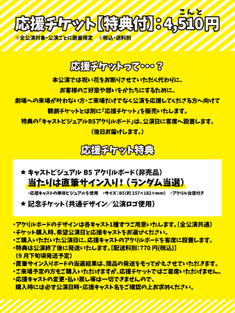 本公演では観劇チケットに加え、劇場への来場が叶わない方・ご来場だけでなく公演を応援してくださる方へ向けて観劇チケットとは別に「応援チケット」を7月28日(木)より発売決定!
