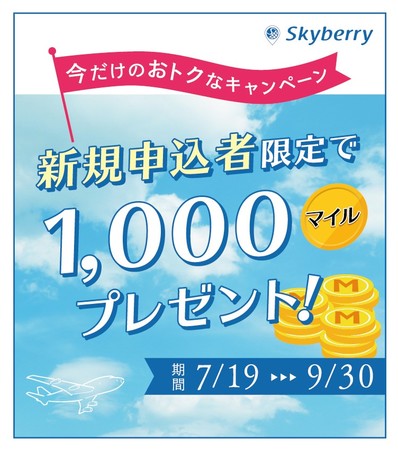 a2networkは、AMC会員で「スカイベリー」をご契約いただいたお客様は毎月のご利用でマイルが貯まるサービスの提供を行っていますが、今回、期間限定で「スカイベリー」を新規にご契約いただいたお客様に、1,000マイルのボーナスマイルをプレゼントするキャンペーンを実施します。