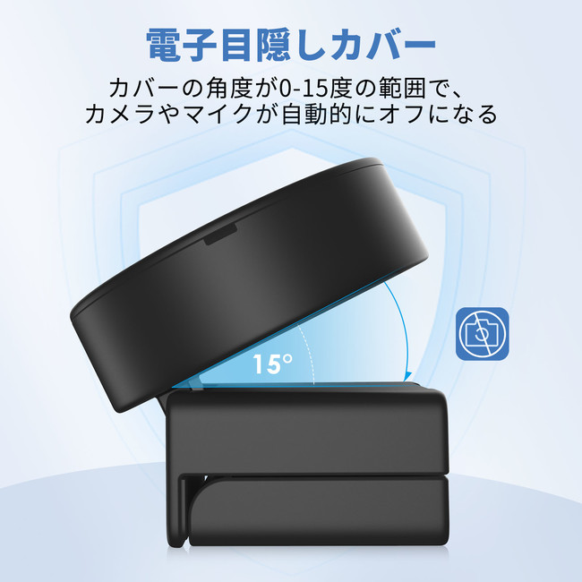 usb カメラの電子目隠しカバーで、挟む角度が15度以下の場合、自動的に動画と音声が停止され、ハッキングや誤作動などが防げます。