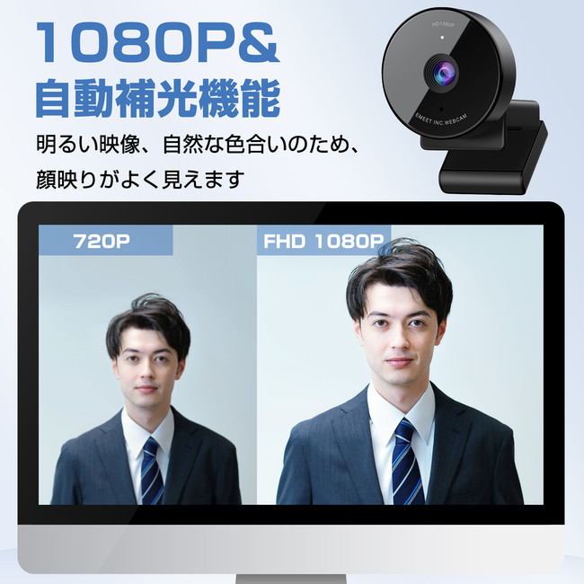 最大解像度 1080p/30fps、有効画素数200万画素とクリアかつ滑らかな撮影が可能です。HD光補正を装備したEMEET C950 WEBカメラは、照明条件に合わせて、光の状態を微調整し、薄暗い場所でも鮮明な高解像度の画像と明るい画像を生み出します。