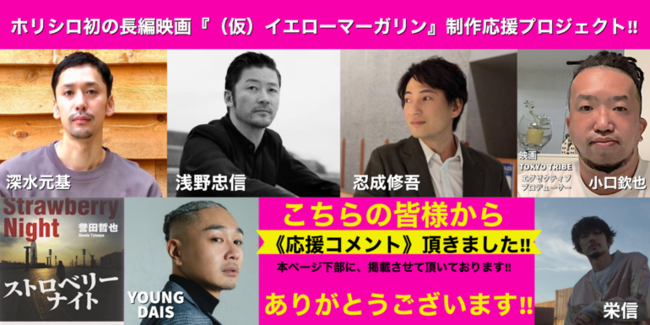 今回の支援プロジェクトに、浅野忠信さん、誉田哲也さん、深水元基さん、忍成修吾さん、YOUNG DAISさん、 栄信さん、小口欽也さんからアツい<応援コメント>をいただきました!