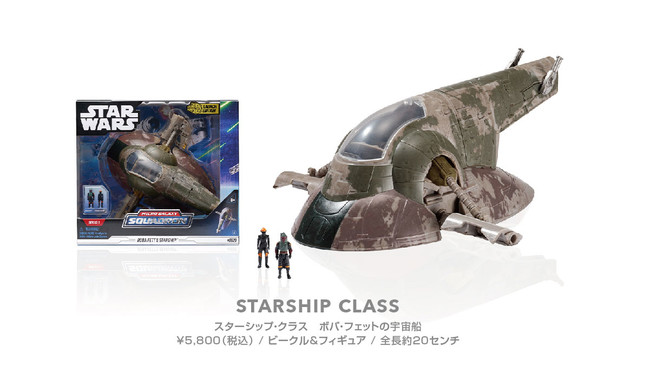 『スター・ウォーズ』に登場するボバ・フェットの宇宙船を、全長約20センチで立体化。ボバ・フェットとフェネック・シャンドのアクションフィギュアが付属する。コクピットと搭乗ハッチは開閉ができ、両翼や機体下部に配置されたミサイルランチャーが可動。パッケージは、そのまま飾ってもカッコいいウィンドウボックス仕様。