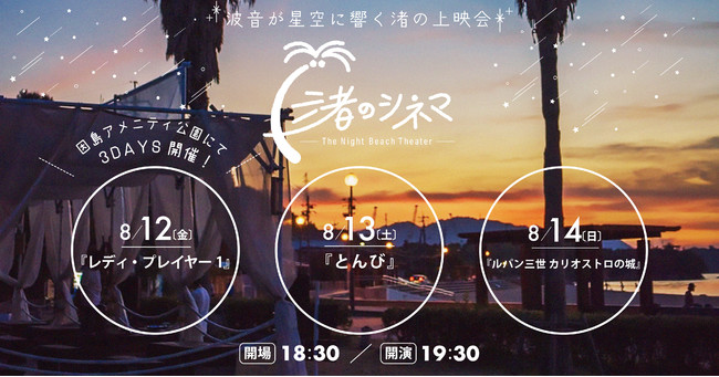 『渚のシネマ』は地域の皆様に「特別な思い出」と「日常の風景の素晴らしさ」をお届けするために因島アメニティ公園で3日間、野外映画上映会を実施します。