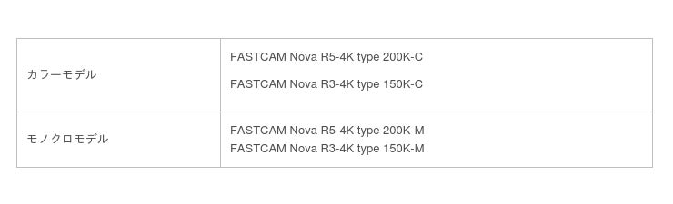 『FASTCAM Nova R5-4K/R3-4K』の主な仕様