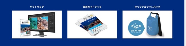 ダイビングでの水中撮影や水族館の展示水槽で撮影した写真など、青みがかった水中写真を実際の色合いに近い写真に仕上げる機能を持つ画像調整ソフト『SILKYPIX Developer Studio Pro11』※に水中写真の調整方法に特化した専用のマリンガイドブックをパッケージングした製品です。機能面では、『SILKYPIX Developer Studio Pro11』に搭載の「マリンコントローラ機能」を使用することにより、ダイビングでの水中撮影のみならず、水族館の展示水槽での撮影も、まるで水中に潜って見ているかのような画像を再現できます。