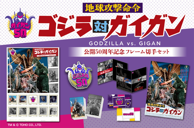 ゴジラシリーズの第12作目『地球攻撃命令 ゴジラ対ガイガン』の劇場公開50周年を記念したフレーム切手セットです。。劇中の名場面で構成されたフレーム切手シートやポストカードの他に、公開当時の宣伝ポスターの復刻版や公式のガイガン生誕50周年記念オリジナルデザインを使用したピンバッジなどをセットにした豪華な商品です。