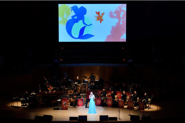 17名のバンドメンバーがステージに入場すると、ドラムの加納樹麻がリズムを刻みはじめ、そのリズムは会場に広がります。そして、3年ぶりの来日となるバンドリーダー&音楽監督のブラッド・ケリーが登場すると、演奏がスタート!オープニングを飾るのは、誰もが一度は聞いたことがある『ピーター・パン』より「右から二番目の星」と、『ラマになった王様』より「ラン・ラマ・ラン」。