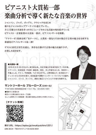 "アナリーゼ(楽曲分析)"をテーマに、大貫祐一郎ならではの視点で音楽の魅力を分析する新感覚ピアノコンサート第三弾!