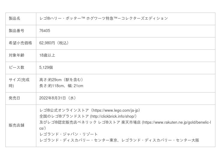 レゴ(R)ハリー・ポッター(TM) ホグワーツ特急(TM)-コレクターズエディション 2022年8月31日(水)販売開始