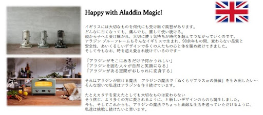 一方、イギリスから生まれた「ブルーフレーム」や、クラッシックなデザインが特長の「グラファイトトースター」でお馴染みのアラジンは、「毎日の暮らしがより楽しく、彩りあふれる毎日になるように。」というコンセプトのもと、製品を製造、また様々なコンテンツを発信しています。
