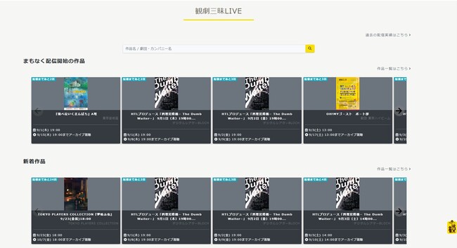 また、団体数の増加に伴い「観劇三昧」サイト内の「劇団一覧」「劇団ページ」「観劇三昧LIVE」のページをさらに見やすくリニューアルしました。劇団や作品をカテゴリー分けし、より便利で使いやすいレイアウトに変えたことに加え、お客様が気になる劇団や作品を探す楽しさを感じていただくことを目指しました。「観劇三昧」を通して全国に数多くある劇団を知っていただき、新たな演劇作品に出会う機会をつくります。