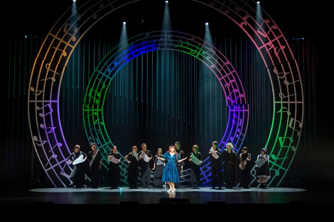 ミュージカルシーンも秀逸で、特にドロシーがOZの王国へ到着した際、「オズオズしい」というキャッチーなワードを散りばめた楽曲で迎えられる場面は、そのにぎやかさに目が釘づけとなる。舞台のセットも、五線譜を円形にしたものなど、物語のテーマである「音楽」が立体的に表現されており、鑑賞者を圧倒する。