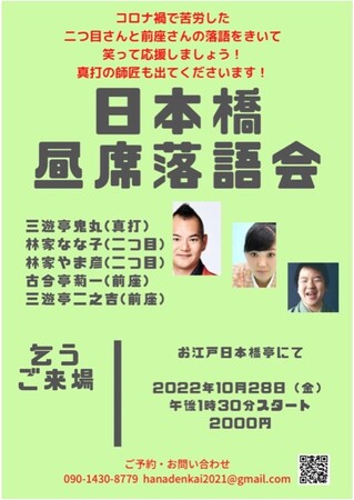 二つ目さんや前座さんの落語を聴いて笑って応援 『日本橋昼席落語会』9月〜12月 出演者決定 カンフェティでチケット発売