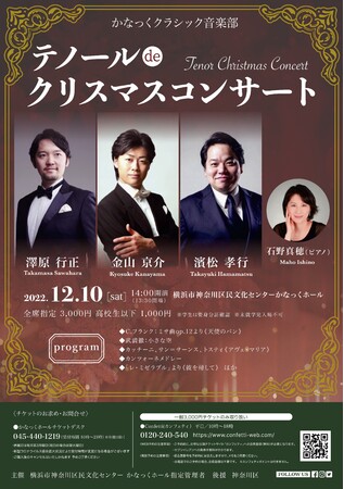 横浜市神奈川区民文化センターかなっくホール『テノールトリオdeクリスマスコンサート』