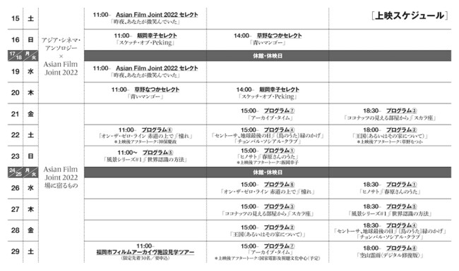 ※会期中に開催予定の「Asian Film Joint2022」フォーラムやトークイベントについては今後発表予定