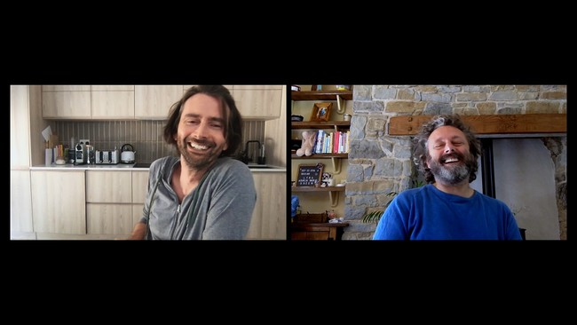 デヴィッド・テナント&マイケル・シーンが悪魔役と天使役の凸凹仲良しコンビを演じた話題のドラマ『グッド・オーメンズ』の撮影セットからそのまま駆け付けたような姿や、デヴィッドが自身の顔がプリントされたマグカップとポーズを決めたり、慌てて家の中を走り回っている場面、マイケルがPCと睨めっこしている場面等…!貴重な“裏側”画像が解禁。凸凹コンビの繰り広げる悲喜こもごもの奮闘と笑いはそのままに、2人の自然体で撮影に挑むリラックスした姿をお楽しみください。