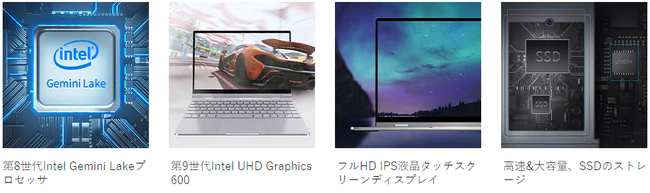 プロセッサー: 第8世代インテルGemini LakeN4120プロセッサ(1.10 GHz、最大2.60 GHz、ターボ・ブースト、4 MBキャッシュ)