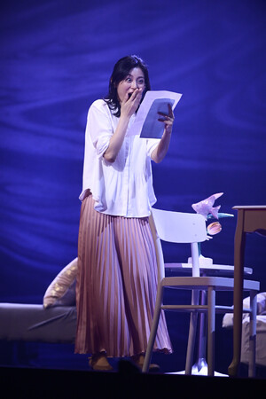 2020年に新国立劇場で初めて舞台化された本作は今回、櫻井いちこ役に本仮屋ユイカ、いちこの脳内会議メンバーの<議長>吉田役に八木勇征(FANTASTICS from EXILE TRIBE)、年上の編集者・越智宏彦役に平野良、年下のアート系男子・早乙女亮一役に白石隼也、脳内会議メンバーの<ポジティブ思考>石橋役に猪野広樹、脳内会議メンバーの<瞬間の感情>ハトコ役に早川夢菜、脳内会議メンバーの<ネガティブ思考>池田役に木村花代、脳内会議メンバーの<記憶・過去を振り返る思考>岸役に石黒賢という新たな布陣、演出での上演となりました。
