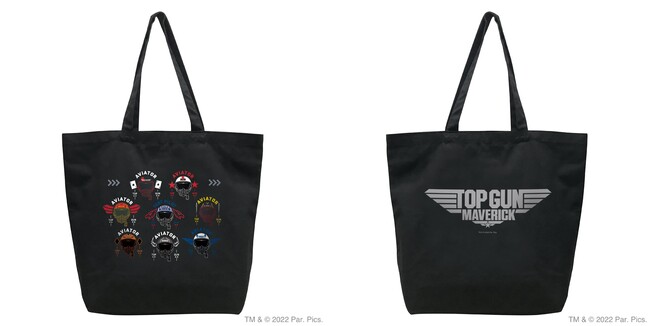 表面にはマーヴェリック、コヨーテ、フェニックス、ボブ、ルースター、ハングマン、ファンボーイ、ペイバックの8人のパイロットのヘルメット、裏面には『トップガン マーヴェリック』のロゴが描かれたトートバッグです。