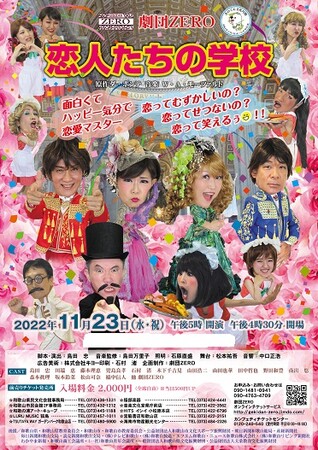 劇団ZERO(代表:島田 忠)主催、痛快喜劇『恋人たちの学校』が2022年11月23日 (水・祝)に和歌山城ホール 大ホール(和歌山県和歌山市七番丁25番1)にて上演されます。 チケットはカンフェティ(運営:ロングランプランニング株式会社、東京都新宿区、代表取締役:榑松 大剛)にて発売中です。