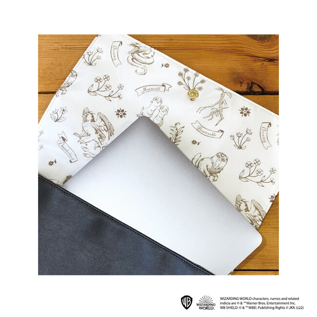 13インチノートパソコンやタブレットが入るサイズです。シンプルな見た目に反して内生地はかわいらしいボタニカル柄となっています。