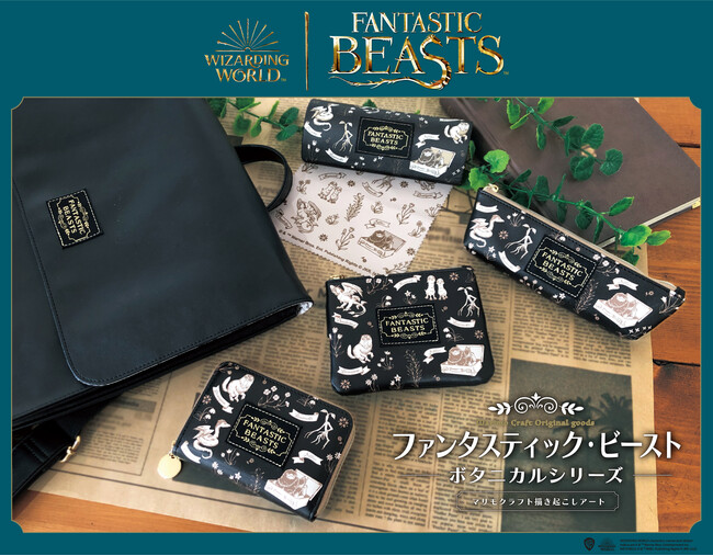 「ファンタスティック・ビースト」に登場する神秘的な魔法動物と、可憐な花々が繊細に描かれた「ファンタスティック・ビースト」ボタニカルシリーズが登場します。黒のフェイクレザーにオリジナル描き起こしアートをプリントした特別なデザインです。本シリーズでは、ティッシュポーチ、コイン&カードケース、スリムペンポーチ、メガネケース(クロス付き)、リュックの5アイテムを展開いたします。